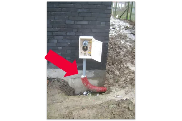 In letzter Zeit werden Sie immer öfter auf unseren kombinierten Druckregler oder UPSO-OPSO (der Teil des Invisiakits ist) stoßen. Sie, die Installateure, sind für die Installation des UPSO-OPSO und die Leitungen verantwortlich, im Gegensatz zu einer Installation mit einem Mitteldruckregler am Tank und einem Niederdruckregler im Hausanschlusskasten an der Fassade. Denken Sie beim Verlegen der Rohre und beim Einsetzen in ein Schutzrohr daran, auch die Enden des Schutzrohrs abzudichten. Wenn die Enden des Schutzrohres nicht abgedichtet sind, kann das Gas leicht vom Warteraum ins Gebäudeinnere gelangen.