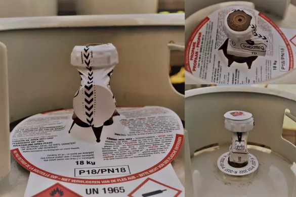 Am Hahnauslass der Antargaz-Gasflaschen gibt es immer eine Dichtung, die Sie entfernen müssen, bevor Sie die Gasflasche verwenden können, wie im nebenstehenden Beispiel gezeigt. Unsere Dichtungen sind einzigartig und dürfen nur von unserem Abfüllzentrum verwendet werden. Wenn Sie jemals an einem Verteilungspunkt ohne unsere einzigartige Dichtung auf unsere Gasflaschen stoßen, wenden Sie sich bitte an unseren Kundendienst.