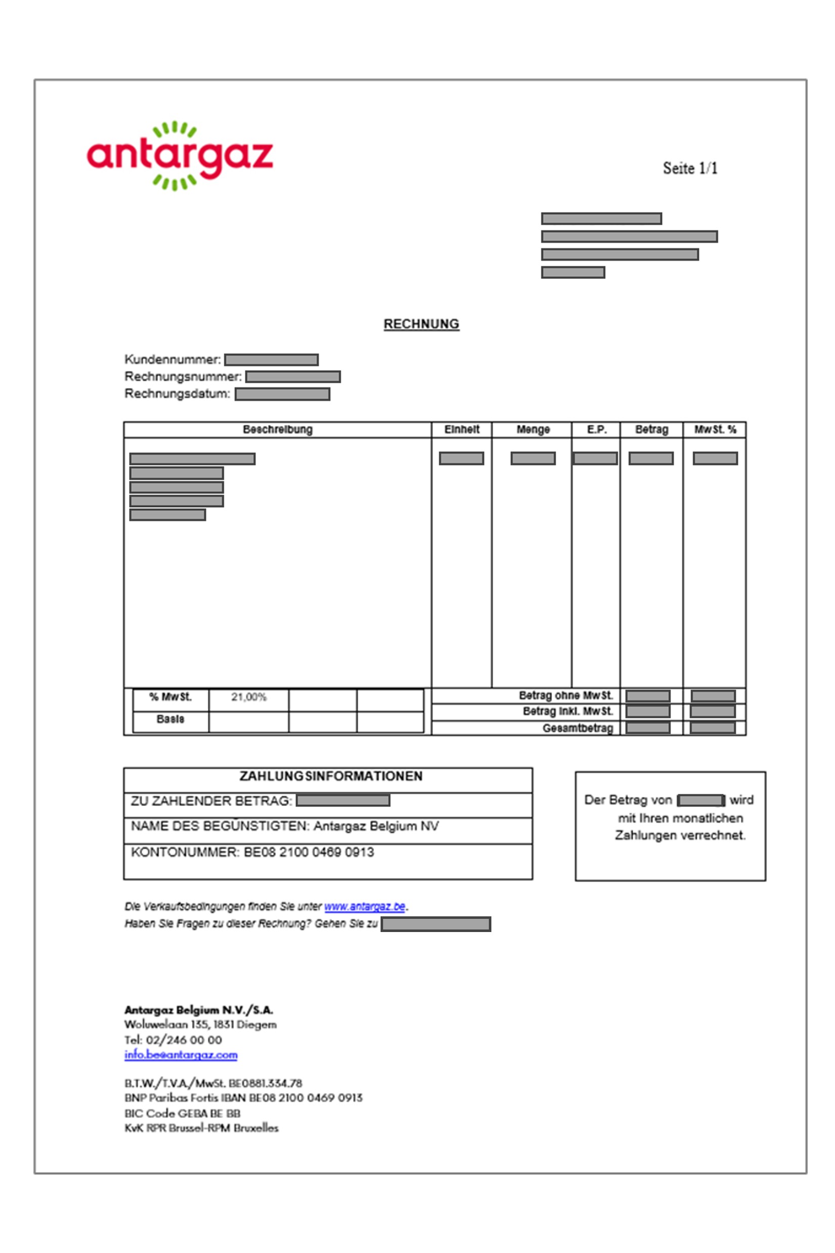 Haben Sie eine Lieferung erhalten und bezahlen Sie nicht per Lastschrift? Dann erhalten Sie eine normale Rechnung wie diese per Post.