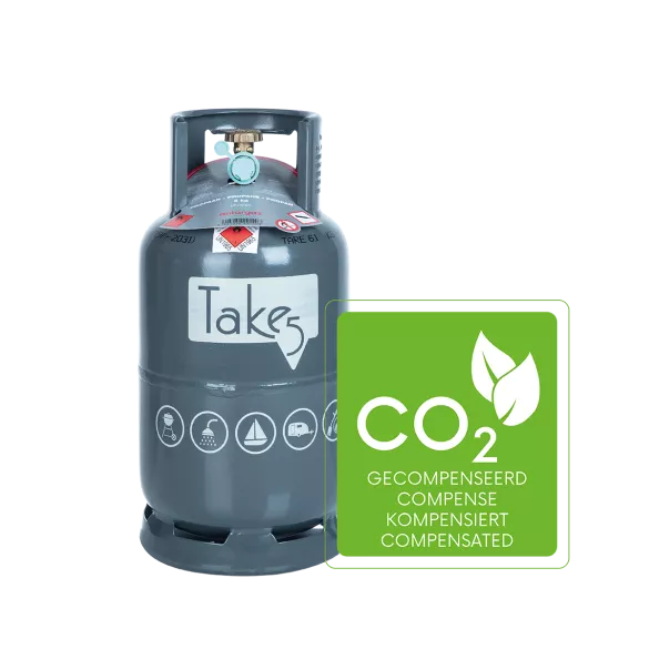 Prenez le Take5, par exemple, une bouteille de gaz de notre gamme avec du gaz propane compensé en CO2. Cette bouteille de gaz compensé carbone contient du gaz propane ordinaire, tout comme votre bouteille de gaz habituelle. Vous produisez donc toujours du CO2 lorsque vous utilisez ces bouteilles de gaz, même s'il s'agit de gaz propane relativement propre. La différence est la compensation de leur émission de CO2.