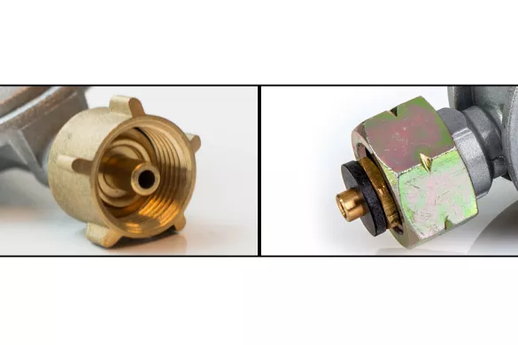 Il est important d'utiliser le raccord approprié ! Attention, comme le filetage d'un raccord DIN et d'un raccord à filetage extérieur est identique, un détendeur DIN s'adapte également à un robinet à filetage extérieur et vice-versa. Cependant, cela ne garantit pas un raccordement étanche au gaz.