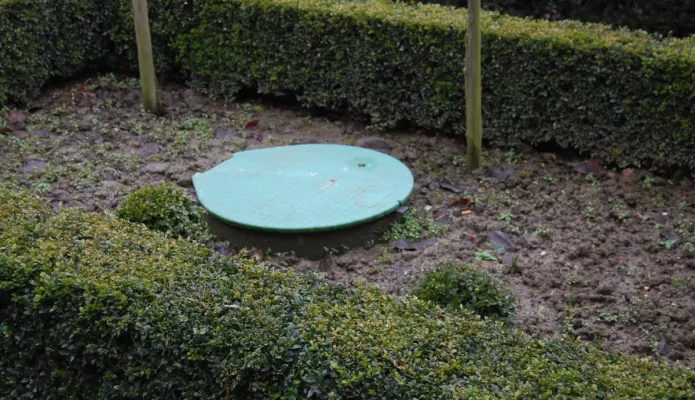Les clients qui souhaitent tout de même « cacher » leur citerne à gaz peuvent opter pour une citerne enterrée. Le couvercle vert de la chambre de visite est alors la seule partie visible de la citerne.