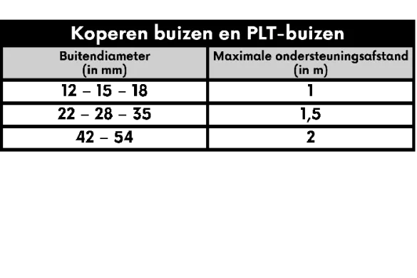 Het PLT-buissysteem wordt beschouwd als vaste leiding en moet dus steeds ondersteund worden door: