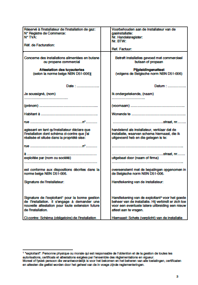 Voor plaatsingen in Wallonië moet het pijpleidingenattest altijd conform zijn met NBN D561-006 norm. Meer informatie hieromtrent kan je hier vinden.