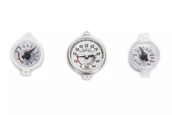 De actuele inhoud van de propaantank lees je af op de peilmeter. De peilmeter zit meestal onder de beschermkap van de bovengrondse tank en altijd in de bezoekkamer van de ondergrondse tank. Hij vermeldt het percentage vloeibaar propaan in de houder (de tank). Het is wel goed te weten dat een peilmeter de werkelijke inhoud bij benadering aangeeft. Het is namelijk geen precisietoestel.