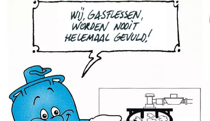 Alle gasflessen zijn tussen 80% en 87% gevuld aangezien er ruimte moet zijn voor de uitzetting van de vloeistof. Wordt de temperatuur rond de gasfles hoger, dan zet vloeibaar gas uit. Daarom wordt de fles niet volledig gevuld, maar is er wat dampruimte. Het is verboden om een gasfles te laten bijvullen. Je kan je lege fles omruilen tegen een volle fles bij één van onze verdelers.